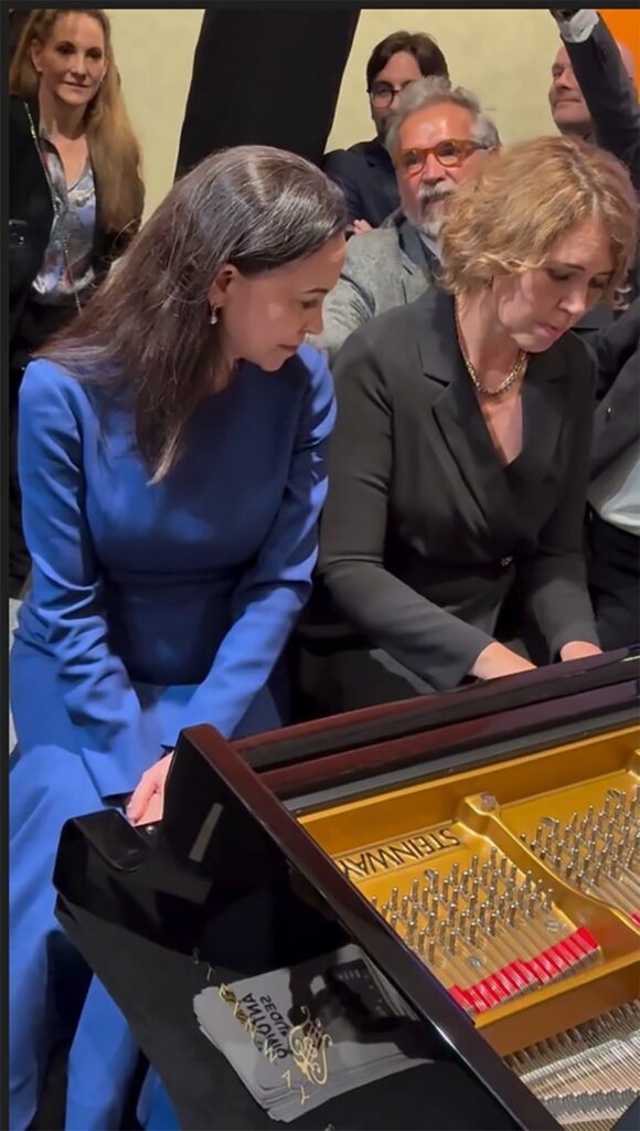 Venezuela pianist Gabriela Montero esines 2025. aasta Nobeli rahupreemia tseremoonial rahupreemia laureaadi María Corina Machado kutsel. Montero esitas tseremoonial improvisatsiooni Venezuela helilooja Simón Díazi tuntud laulu “Mi Querencia” teemal.