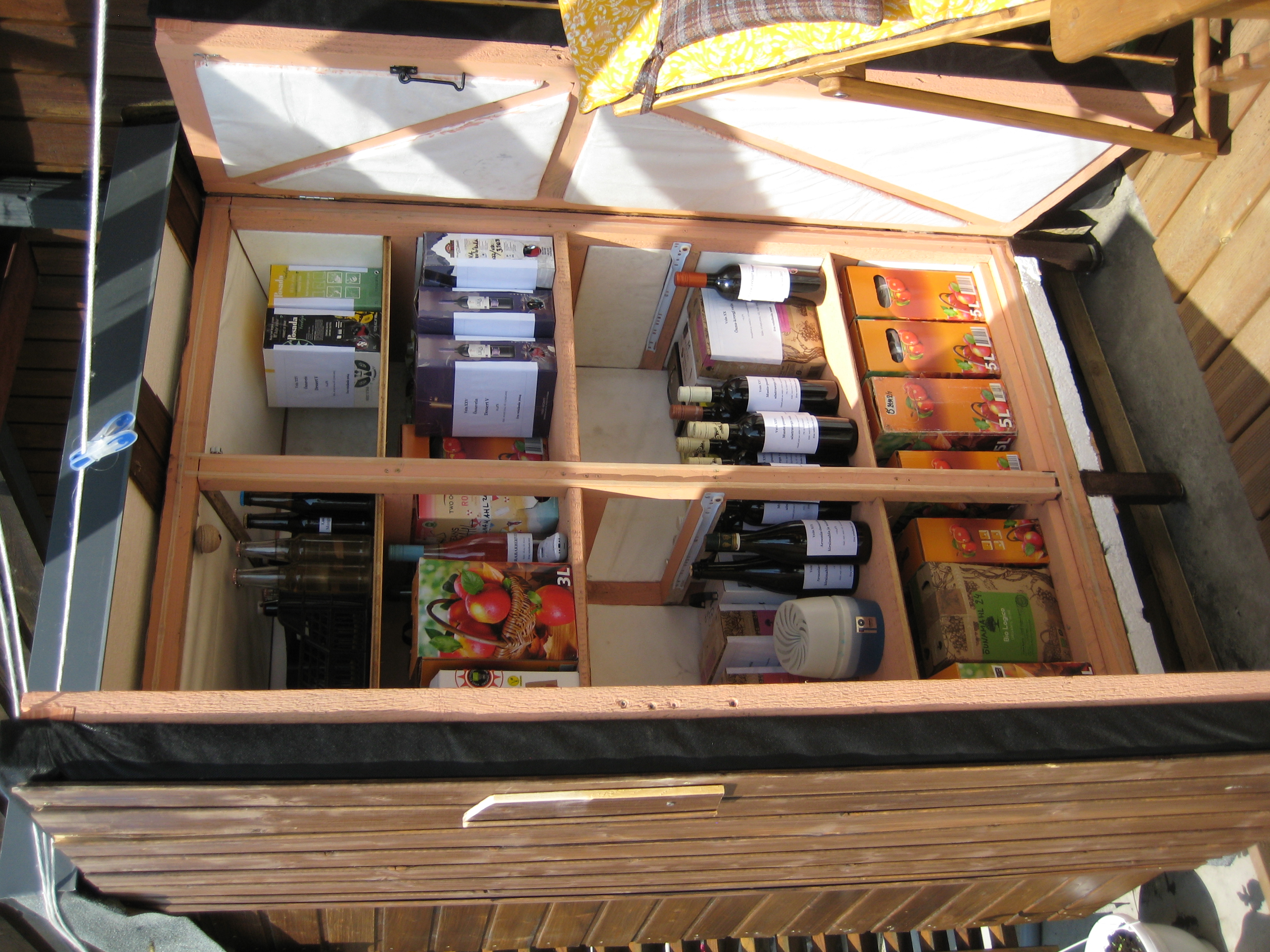 Töölauda mul polnud ja mõistuse oli suvekuumus ära sulatanud, seetõttu tegin kõik tööd äärmiselt ohtlikel viisidel ja peaaegu sõna otseses mõttes põlve otsas, seega tegemise kvaliteet oli materjaliga ilusti samal tasemel. Liiga õhukesed seinad ilmnesid olema omaette probleem (mõelda vaid, ei olnudki stabiilne nt käega peale toetudes) ja kuna ka kusagile polnud sahtli kandureid kinnitada, siis tuli mõnevõrra loominguliselt mõelda. Ja voodipesusahtli liimisin-kruvisin väga põhjalikult valesid külgi mööda kokku (ei, põhi ei olnudki mitte see kõige suurem ja laiem tükk, mida müstilisel kombel oli lausa kaks, vaid hoopis kõige kitsam jupp, mida oli vaid üks). Õnneks tegin ma mingi mõõtmisvea ka ülemise, pisema sahtliga, nii et ka see ei sobinud sellesse kasutusse. Aga, tsiteerides Bob Rossi (USA telekunstnik a la Raivo Järvi) ja tema stamplauset maalimisel juhtuvate apsude kohta: “Pole vigu, on vaid rõõmsad pisikesed juhtumused.” Väga vabastav mõte. Oma juhtumuste tõttu on mul nüüd lisaks öökapile väga hea kõrgemate äärtega serveerimiskandik (untsu läinud väiksem sahtel) ning pehmenduse ja kaanega (!) iste/tumba/mänguasjakast (untsu läinud suurem sahtel). Aga valmis sai ka see öökapike ja sellega said tehtud esimesed sammud puutöö vallas.