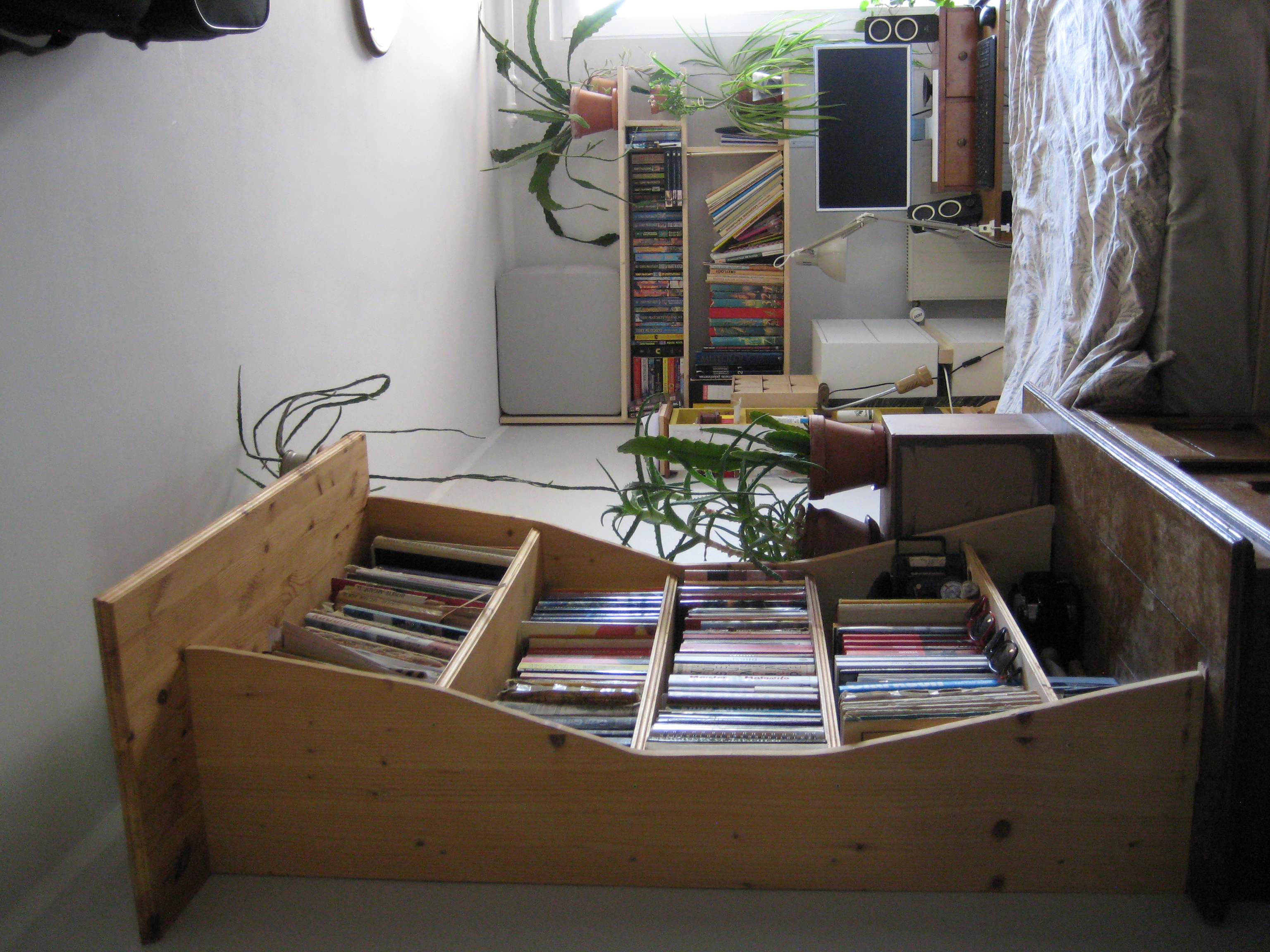 Nagu ikka, on mõnikord vaja mingit tõuget, et millegi uue või vanaga alustada. Mulle oli see tõuge umbes kümme aastat tagasi Tartust tagasi koju, Tallinnasse kolimine. Naasin kõigega, mis mul Tartus oli, st riided, asjad ja ka mööbel. See omakorda tekitas probleemi, et kuidas nüüd suure hulga uute asjadega oma küll suurde, aga selleks hetkeks juba niigi mööblit täis tuppa ära mahtuda. Muidugi on alati variant osa asju uuele ringile saata, kuid seda ma ei tahtnud. Õnnestus kõik ära mahutada, aga selgus, et kuigi mööblit on isegi üleliia palju, pole siiski täpselt sellist mööblit, nagu vaja oleks. Näiteks raamaturiiulid, kuhu mahuksid ära minu lemmikraamatute jooksvad meetrid, nt kõrguse järgi reas. Ja täpselt 30 cm lai öökapp voodi ja liigutatamatu riiuli vahele. Kusagilt sellises mõõdus mööblit ju ei leia ja tellimustööna oleks see ilmselt väga kallis (mitte et ma uurinud oleksin). Seetõttu jäid raamatud algul kastidesse ja esimeseks “öökapiks” sai vennast üle jäänud arvutikorpus, mis oli mõõtudelt igati ideaalne, välja arvatud fakt, et see oli arvutikorpus. Küll aga andis see suurepärased mõõdud kätte kapi sügavuse ja kõrguse kohta.