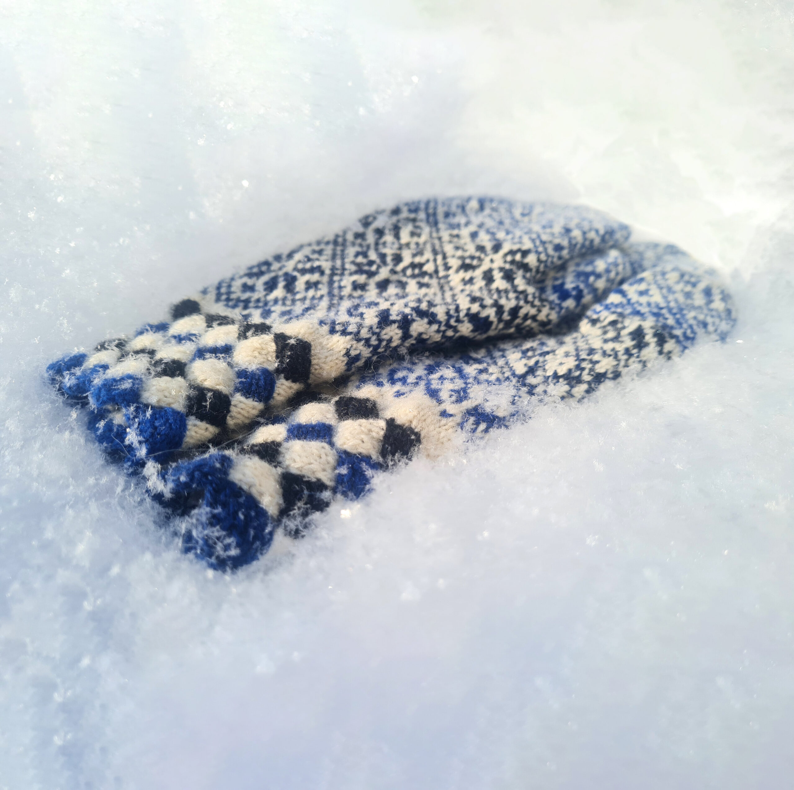 Omaette asi on kirimustrite väljamõtlemine. Muidugi saab võtta ka olemasoleva mustri, aga ikkagi tuleb see planeeritava eseme suurusega täpselt sobitada, lisaks veel näiteks pöidlakiiluga kinnaste kudumisel leiutada kiilu ja pöidla suurusele sobiv muster. Ning valida lõngad ja vardad. Ma armastan peenikeste varrastega kududa, see on justkui pixel art kõrgema resolutsiooniga, tulemus jääb eriti kaunis!